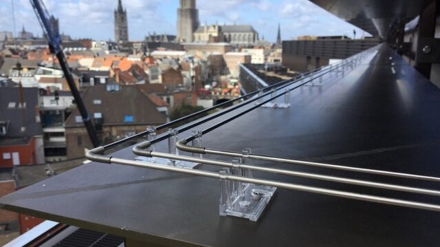 Nous utilisons des barrettes en inox/rvs de 3mm qui sont chargées électro-magnétiquement positivement et négativement. Lorsqu’un oiseau touche au moins deux barrettes, il sentira une petite décharge électrique indolore, mais inoubliable.